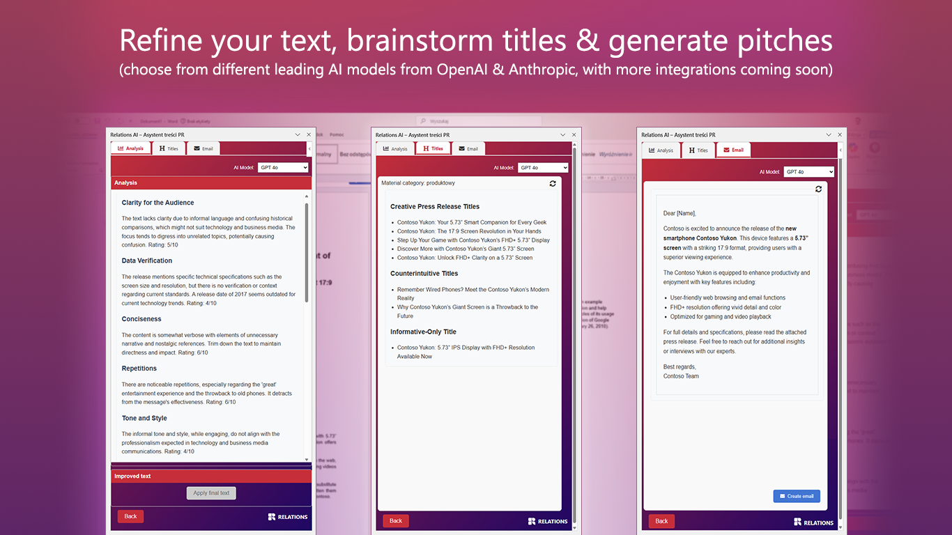 Zainteresowany licencją Relations AI dla siebie lub swojego zespołu PR? Napisz do nas na relations-ai@sarota.pl.